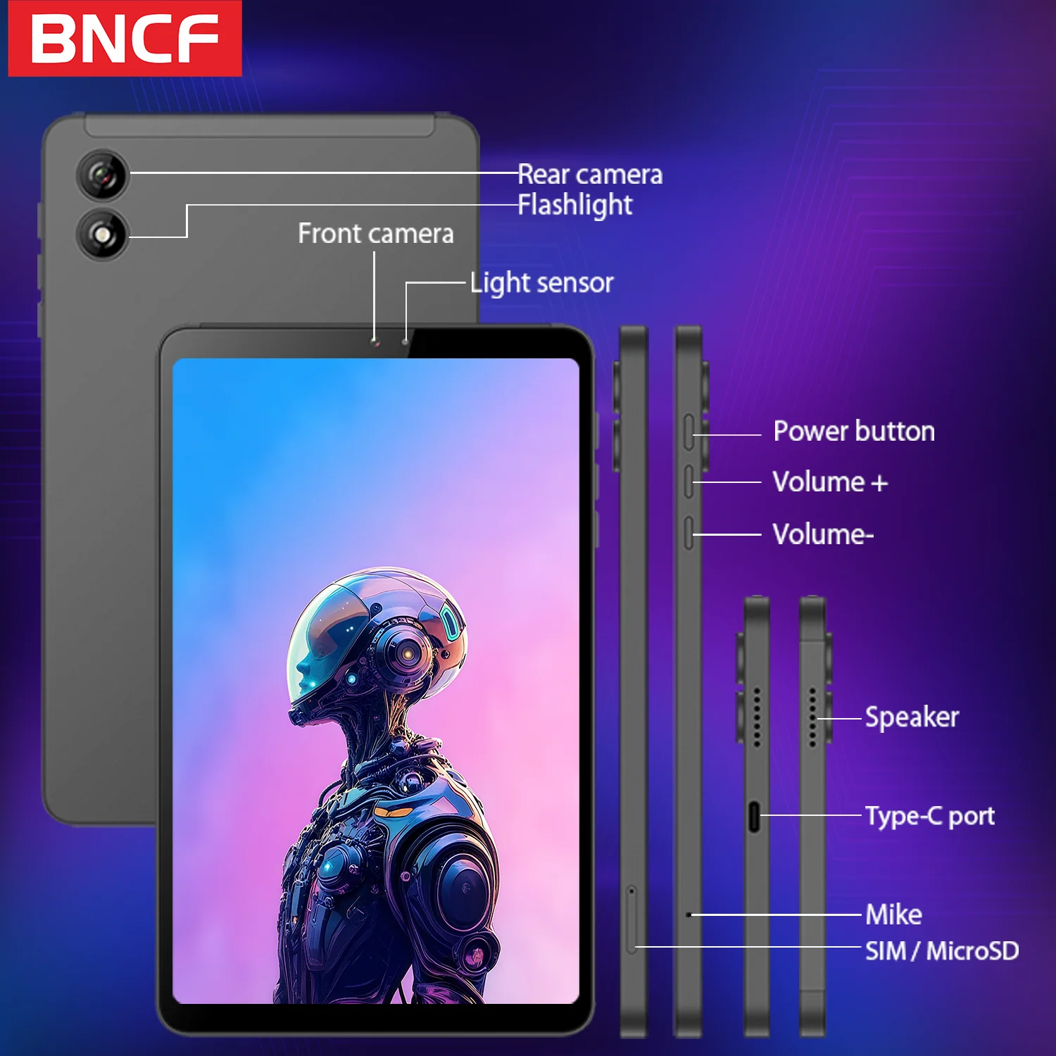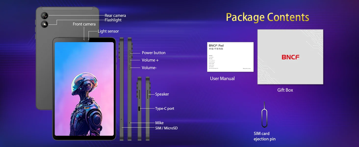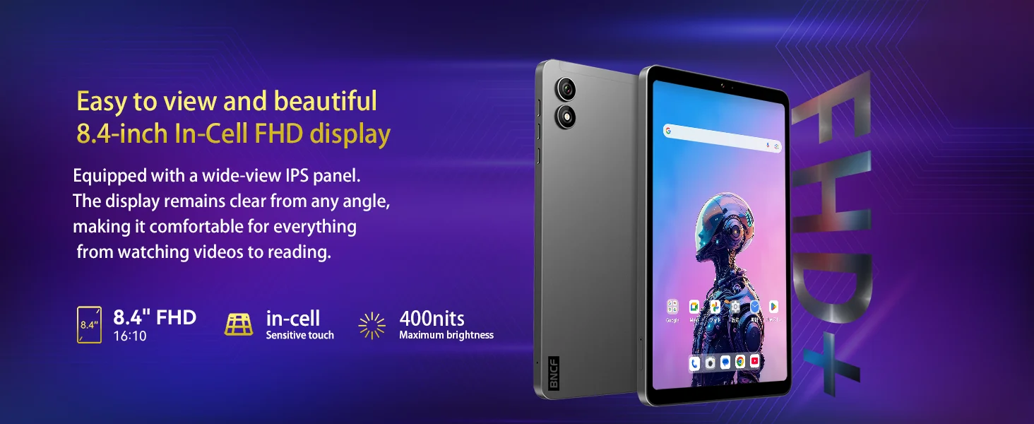 The BNCF 8.4'' Mini Ultra Android 15 Tablet boasts an ultra-slim profile, perfect for those who value portability without sacrificing performance.